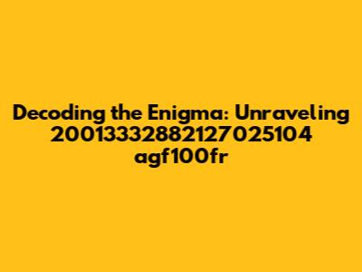 Hey guys! Ever stumbled upon a mysterious string of characters and wondered what secrets it holds? Today, we're diving deep into the world of alphanumeric codes, specifically focusing on the intriguing sequence 20013332882127025104 agf100fr. What could it possibly mean? Is it a serial number, a product code, or perhaps a secret message from another dimension? Well, buckle up, because we're about to embark on a journey of discovery to unravel this enigma. Let's break it down, analyze its components, and explore the various possibilities behind its existence. It's like being a digital detective, piecing together clues to solve a captivating mystery. So, grab your magnifying glass (or your trusty keyboard) and let's get started! We will explore possible structures that the string 20013332882127025104 agf100fr might have. Also we will see what kind of data is encoded into it, and finally touch the application of this kind of string in the real world. By the end of this exploration, you'll not only understand this specific code but also gain a broader appreciation for the world of data encoding and identification.