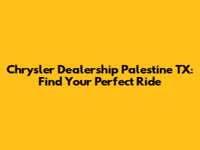 Navigating Chrysler Dealerships in Palestine, TX