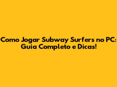 Como Jogar Subway Surfers No PC: Guia Completo E Dicas!