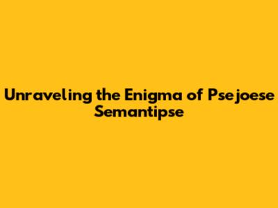 Unraveling the Enigma of Psejoese Semantipse