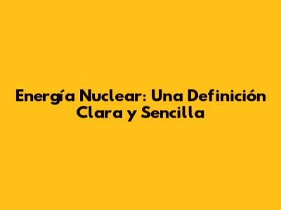 Energía Nuclear: Una Definición Clara Y Sencilla
