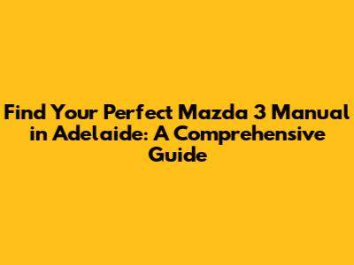 Hey there, car enthusiasts! Looking to snag a Mazda 3 manual in Adelaide? You've come to the right place! This guide is your ultimate resource for finding, inspecting, and ultimately driving away in that sweet, stick-shift Mazda 3 you've been dreaming of. We'll cover everything from where to look, what to look for, and even a few tips on making the whole process a breeze. So, buckle up, and let's dive into the world of Mazda 3 manual cars for sale in the vibrant city of Adelaide, Australia.