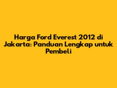 Memiliki mobil impian yang tangguh dan nyaman seperti Ford Everest generasi kedua, terutama untuk model tahun 2012, bisa jadi dambaan banyak orang di Jakarta. Harga Ford Everest 2012 di Jakarta menjadi salah satu faktor kunci yang dicari para calon pembeli. Mobil SUV tangguh ini menawarkan kombinasi performa mesin yang handal, kenyamanan berkendara, serta kemampuan jelajah yang mumpuni, menjadikannya pilihan menarik di pasar mobil bekas. Apakah kamu sedang mencari SUV yang bisa diandalkan untuk keluarga atau sekadar ingin menjelajahi berbagai medan? Ford Everest 2012 bisa jadi jawaban yang tepat. Artikel ini akan mengupas tuntas berbagai aspek terkait harga, kondisi, hingga tips memilih Ford Everest 2012 bekas di kawasan Jakarta dan sekitarnya. Kita akan bedah apa saja yang perlu kamu perhatikan agar tidak salah pilih dan mendapatkan mobil idaman dengan harga terbaik. Jadi, siap-siap untuk mendapatkan informasi berharga seputar SUV legendaris ini!