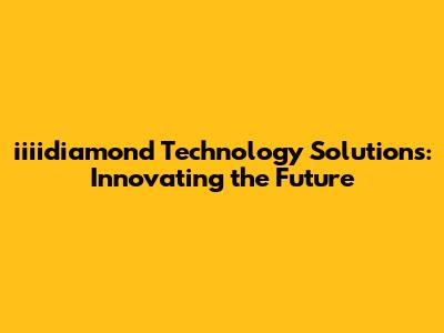 Iiiidiamond Technology Solutions: Innovating The Future
