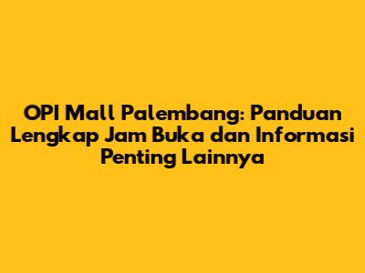 OPI Mall Palembang: Panduan Lengkap Jam Buka dan Informasi Penting Lainnya