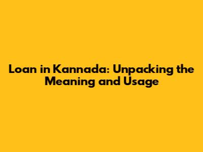 Loan In Kannada: Unpacking The Meaning And Usage