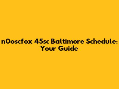 N0oscfox 45sc Baltimore Schedule: Your Guide