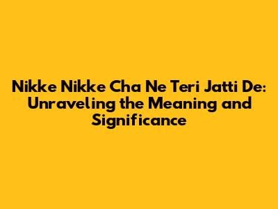 \Hey guys! Ever heard a song and felt totally stumped by what it meant? Today, we're diving deep into the popular Punjabi line "Nikke Nikke Cha Ne Teri Jatti De." This phrase has been making waves, and we're here to break it down for you. So, buckle up, and let's get started!