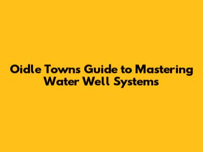 Oidle Town's Guide To Mastering Water Well Systems