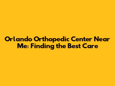 Orlando Orthopedic Center: Find The Best Care Near You
