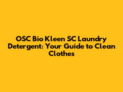 OSC Bio Kleen SC Laundry Detergent: Your Guide To Clean Clothes