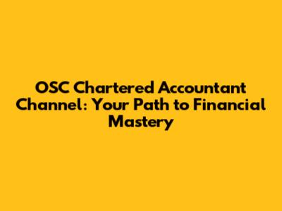 OSC Chartered Accountant Channel: Your Path To Financial Mastery