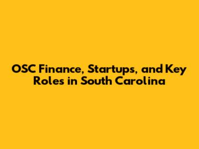OSC Finance, Startups, And Key Roles In South Carolina