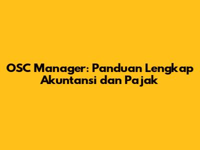 OSC Manager: Panduan Lengkap Akuntansi Dan Pajak