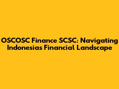 Let's dive into the world of OSCOSC Finance SCSC in Indonesia. Understanding the financial landscape of a country as diverse and dynamic as Indonesia can be quite the journey. Whether you're an investor, a student, or just curious about how financial institutions operate, getting a grip on entities like OSCOSC Finance SCSC is super important. So, what exactly is OSCOSC Finance SCSC, and how does it fit into the Indonesian financial ecosystem? Let's break it down and make it easy to understand, guys!