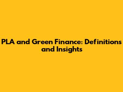 PLA & Green Finance: Definitions And Insights