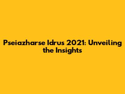 Pseiazharse Idrus 2021: A Comprehensive Overview