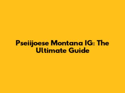 Pseiijoese Montana IG: The Ultimate Guide