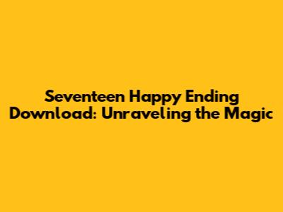 Hey guys, let's dive into the exciting world of "Seventeen Happy Ending"! If you're on the hunt for this specific download, you've come to the right place. We're going to explore what makes this particular story so captivating and how you can get your hands on it. So, grab your favorite snack and let's get started on this literary adventure!