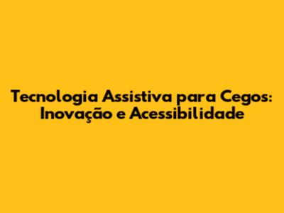 Tecnologia Assistiva Para Cegos: Inovação E Acessibilidade