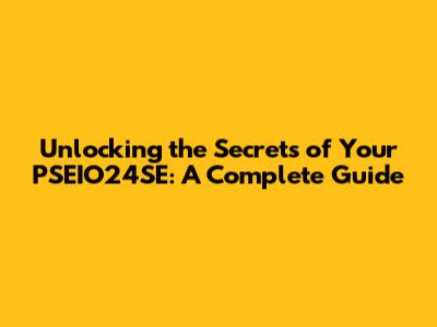 Unlocking The Secrets Of Your PSEIO24SE: A Complete Guide
