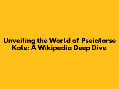 Unveiling The World Of Pseialorse Kole: A Wikipedia Deep Dive